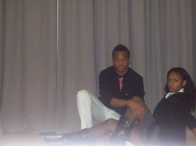 At the tuxedo place where kyle was fitted for his tuxedo for prom! Me and Angela playin around!